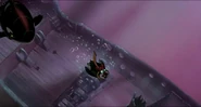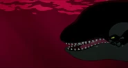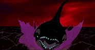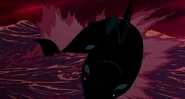 Much later, as Hubie and Rocko are closer than ever to home, something hits their iceberg with tremendous force and shakes it violently. Rocko realizes their attacker must be at least one orca and tells the dreaded fact to Hubie that orcas are seen traveling in pods in the cold oceans of the Arctic Ocean. Just then, another orca rams their iceberg and starts breaking it up. Hubie and Rocko hop from one iceberg to another, avoiding more orca attacks, until they see an iceberg that looks like a sinister face and decide to swim for it to escape. Suddenly, however, another orca leaps out of the water and hits their iceberg, smashing it in two with its weight. Hubie loses his pebble in the water, and, despite Rocko's protests, dives after it. A third orca leaps out and attacks the berg, but Rocko leaps on it to try and fend it off. Hubie dives down to the wreck of a whaling ship on the bottom and retrieves his pebble, but two orcas suddenly appear out of nowhere to attack him. Hubie swims to the bow of the ship and tries to fire the harpoon at his attackers, but the first orca slams into the harpoon, smashing it to bits.