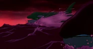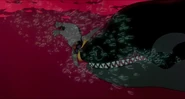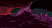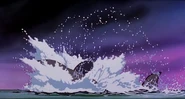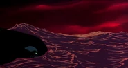 After barely managing to stay one swim stroke ahead of the large bull Orcas, Hubie finally reaches the sinister looking iceberg, but struggles to reach the top out of the water. The first wave doesn't lift him high enough, but the second wave is just enough to push him up onto the berg. As Hubie is struggling onto the berg, an orca makes a massive leap from the water and tries one last time to grab Hubie in its mouth, but it narrowly misses. Hubie gets out of its way and watches the dolphin fall helplessly back into the water without its prey. As the orcas disappear back below the tsunami, Hubie calls out for Rocko, and is shocked and saddened when a third wave washes a scarf onto the berg; this makes Hubie assume the rest of the orcas must have eaten his best friend. Fortunately, he was later proven wrong when Rocko not only reappeared alive and well, but also gave Hubie back his pebble, which he single-handedly recovered.