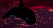 Hubie sees one of the orcas for the first time while he and Rocko are considering separating from one another on their way back to Antarctica. Rocko points the large bull Orca out to him and describes it as the "meanest killing machine in these waters." This made Hubie realize that Rocko likes him enough to save his life, though Rocko initially denies it. He later admits it, however.
