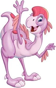 Ruby is often the voice of wisdom among the young dinosaurs, able to explain matters the others do not understand. She has a calm demeanor and shows kindness and empathy to others. A strange habit of hers is to sometimes immediately repeat herself in a backwards way. For instance, she might say as a greeting: "Hello my friends, my friends hello!" She may be considered the opposite of Chomper, being female, calm, and more relaxed than him she preferred to relax in warm mud over playing a sport with him in one episode. She is also older and smarter due to more experience in life.